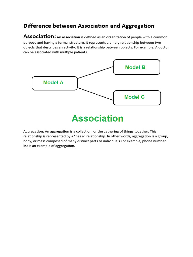 relationship is represented by a “has a” relationship. In other words, aggregation is a group,