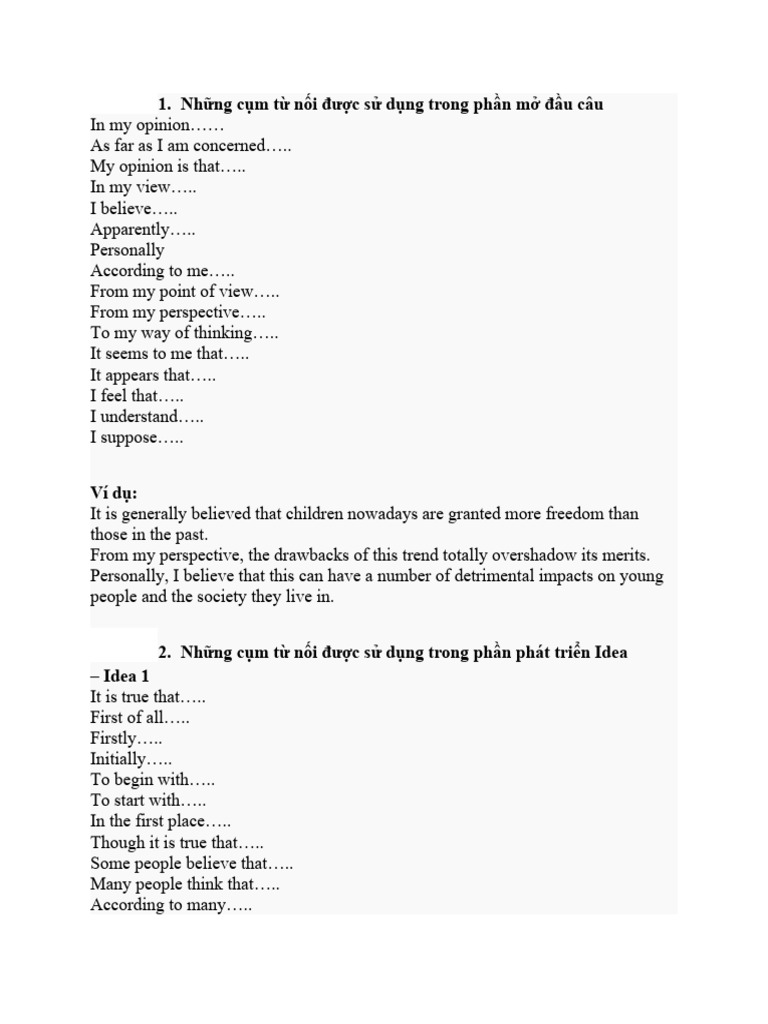 2. Những cụm từ nối được sử dụng trong phần phát triển Idea
