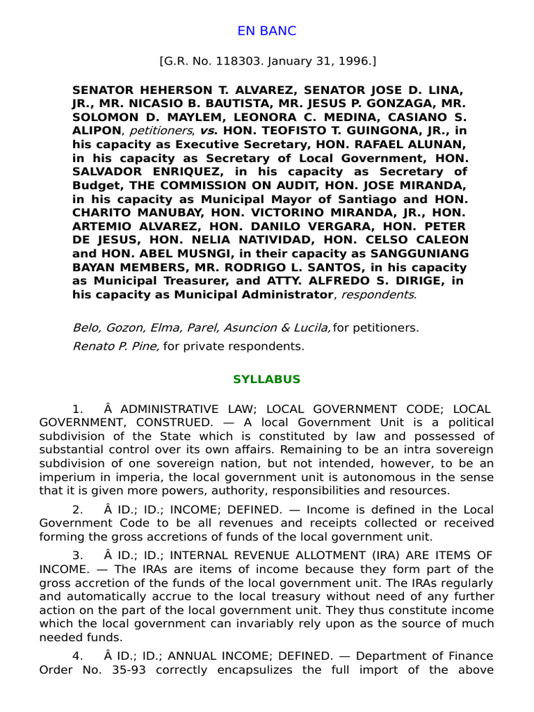 ALIPON, petitioners, vs. HON. TEOFISTO T. GUINGONA, JR., in