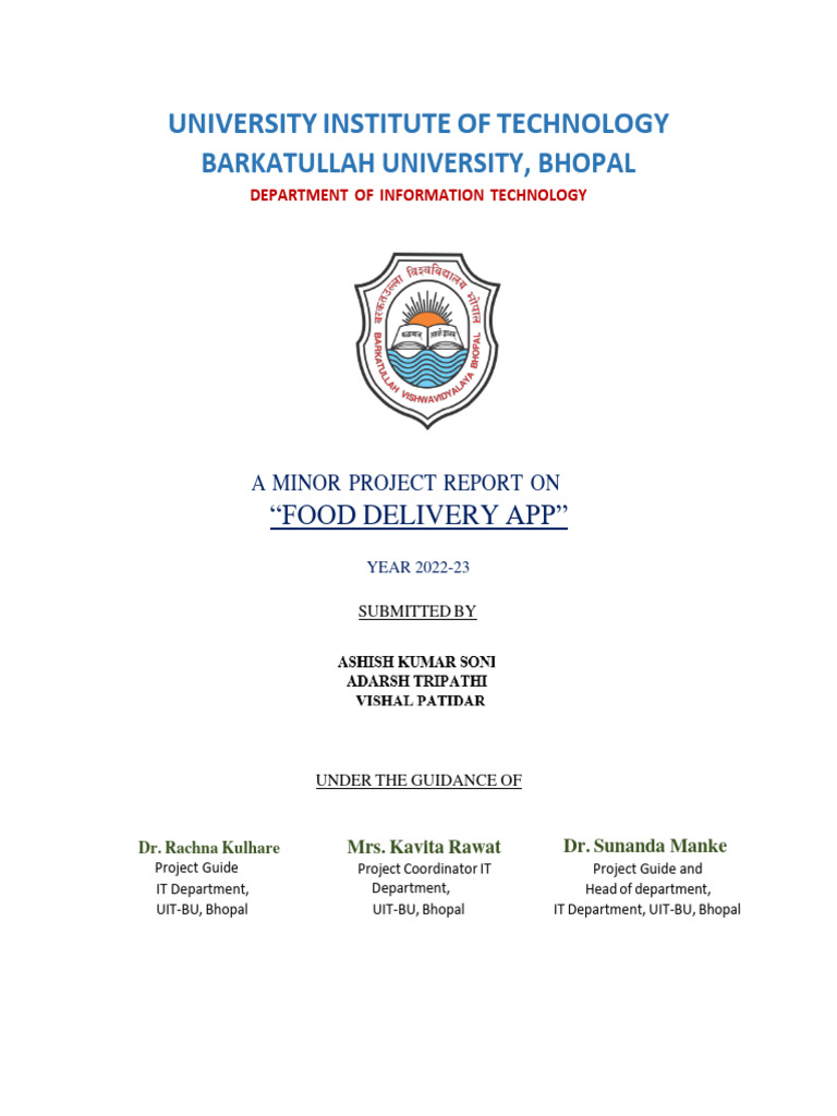 guidance of Dr. Rachna Kulhare, Project Guide, Department of IT, University Institute