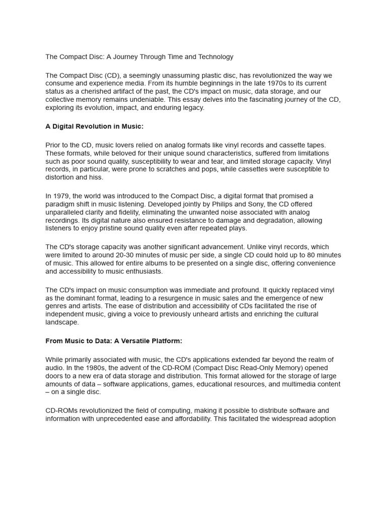 collective memory remains undeniable. This essay delves into the fascinating journey of the CD,