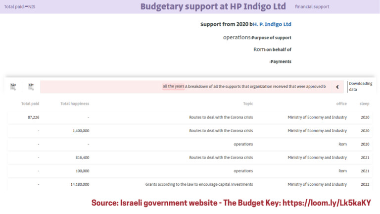 Budgetary support at HP Indigo Ltd