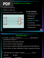 2. For the force-couple system as shown, determine location of the equivalent single force acting