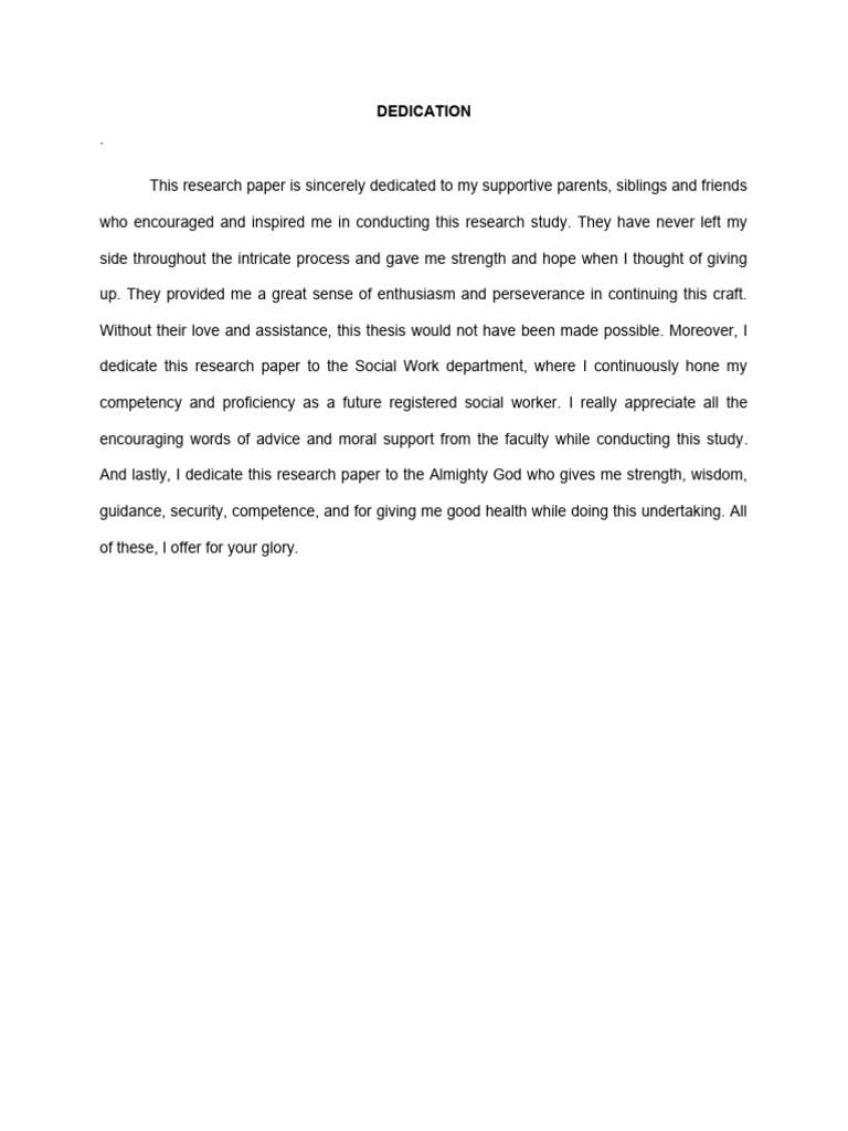 And lastly, I dedicate this research paper to the Almighty God who gives me strength, wisdom,