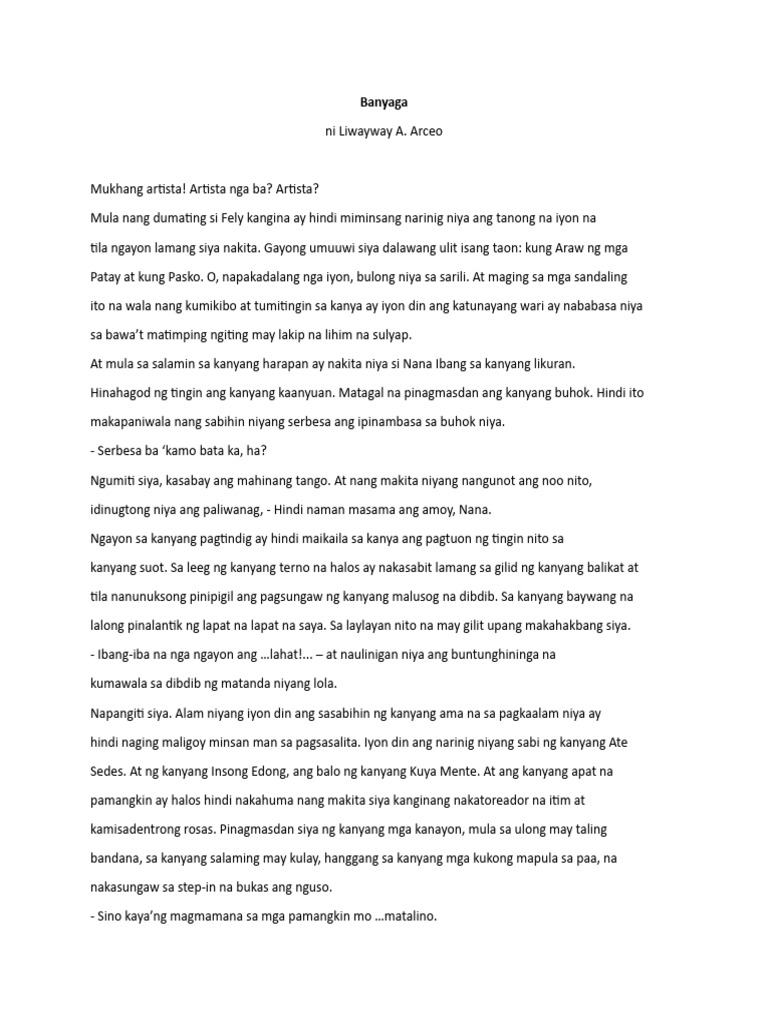Ang “Banyaga” ni Liwayway Arceo ay isang Maikling Kuwento.