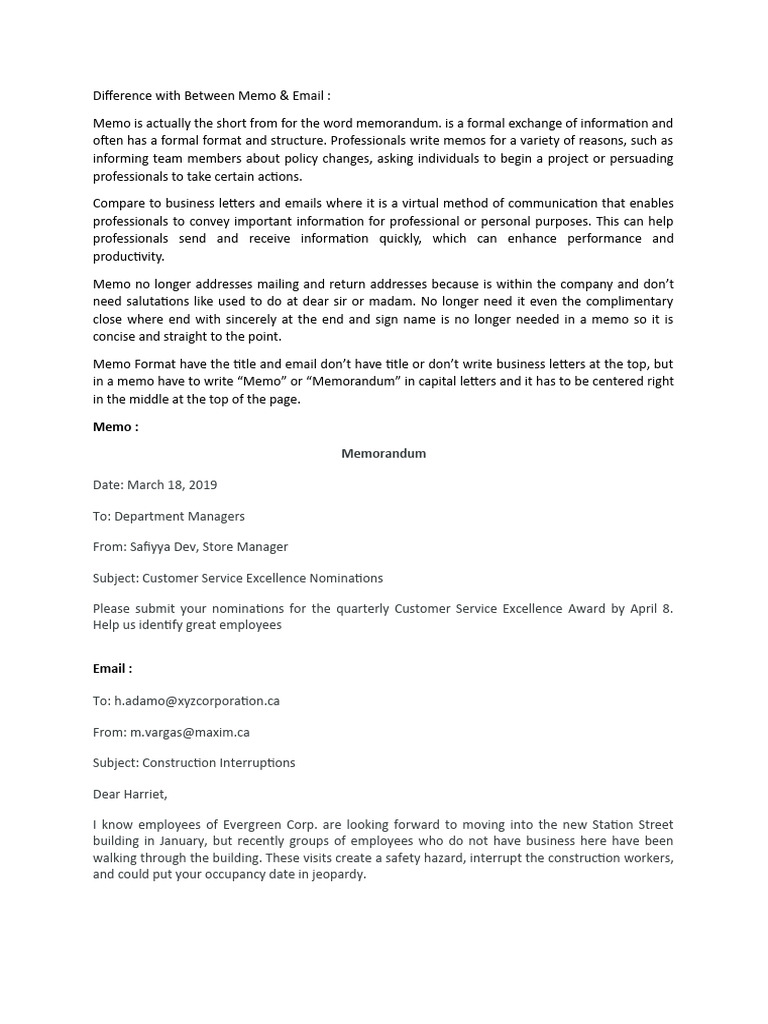 Memo Format have the title and email don’t have title or don’t write business letters at the top, but