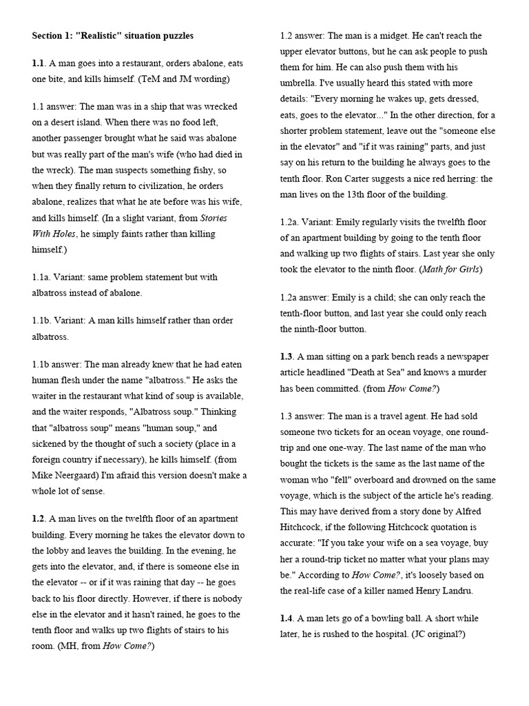 1.5. Two men enter a bar. They both order identical 1.8. Beulah died in the Appalachians, while Craig died