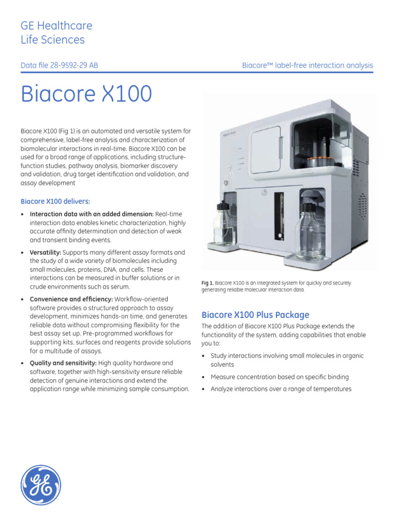Biacore X100 (Fig 1) is an automated and versatile system for