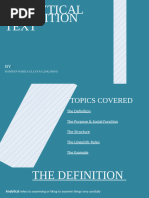Analytical exposition is a piece of text that presents one side of an issue. If you have ever