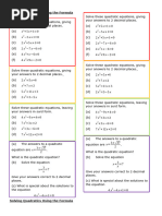 Worksheet: Solving Quadratic Equations Using Quadratic Formula