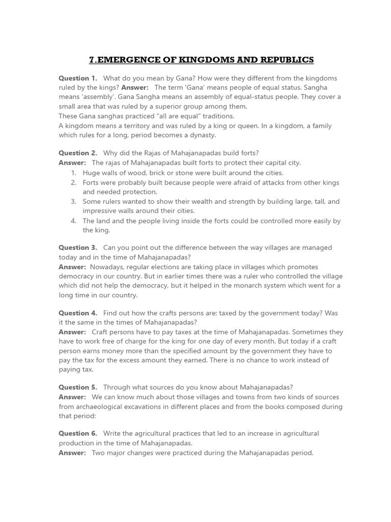 EMERGENCE OF KINGDOMS AND REPUBLICS