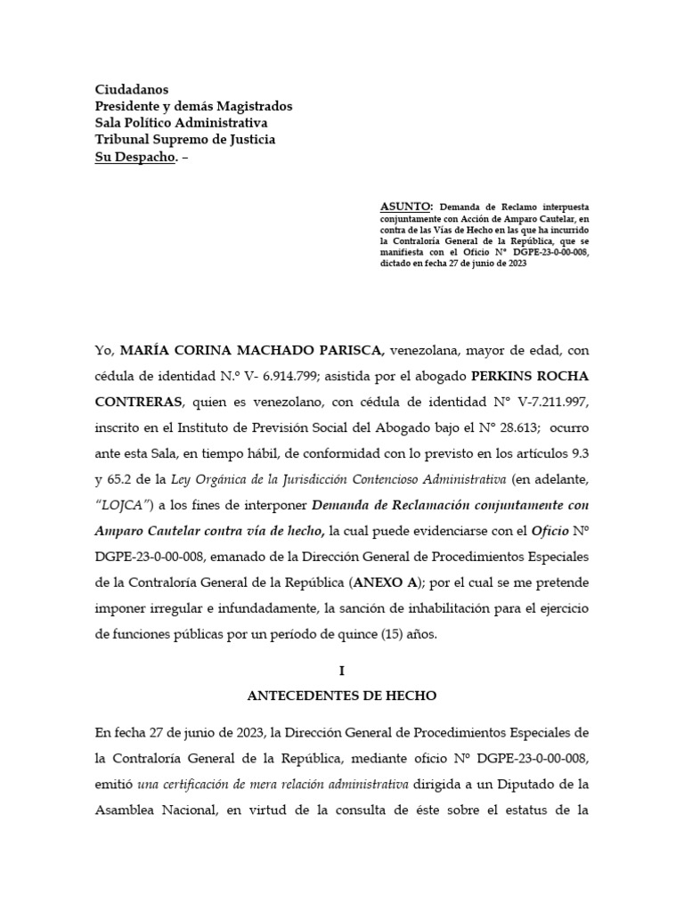 La demanda que interpuso María Corina Machado ante el TSJ (Documento)