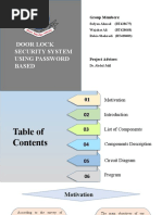 The Main Part of the above Circuit diagrams is the Microcontroller AT89C2051. The Keypad was the input device and it was connected in a matrix format so that the numbers of ports needed are reduced. The Microcontroller reads a four-digit password through the Keypad. Then the Microcontroller compares the four from one region to another. Resistors are usually placed in electric circuits. Physicists explain the flow of current through a material, such as a resistor, by comparing it to water flowing through a pipe. Resistors are designed to have a specific value of resistance. Resistors used in electric circuits are cylindrical. They are often color coded by three or four color bands that indicate the specific value of resistance. Resistors obey ohms law, which states that the current density is directly proportional to the electric field when the temperature is constant. 2) Capacitor : Capacitor or electric condenser is a device for storing an electric charge. The simplest form of capacitor consists of two metal plates separated by a non touching layer called the dielectric. When one plate is charged with electricity from a direct current or electrostatic source, 1) Resistor : Resistor is a component that resists the flow of direct or alternating electric circuit. Resistors can limit or divide the current, reduce the voltage, protect an electric circuit, or provide large amounts of heat or light. An electric current is the movement of charged particles called electrons EEPROM (AT24C02) The AT24C02 provides 2048 bits of serial electrically erasable and programmable read-only memory (EEPROM) organized as 256words of 8 bits each. The device is optimized for use in many industrial and commercial applications where lowpower and low-voltage operation are essential. The AT24C02 is available in space-saving 8-lead PDIP, 8-lead JEDEC SOIC, 8-lead MAP, 5-lead SOT23 (AT24C02) and 8-lead TSSOP packages and is accessed via a 2-wire serial interface. In addition, the entire family is available in 2.7V (2.7V to 5.5V) and 1.8V (1.8V to 5.5V) versions
