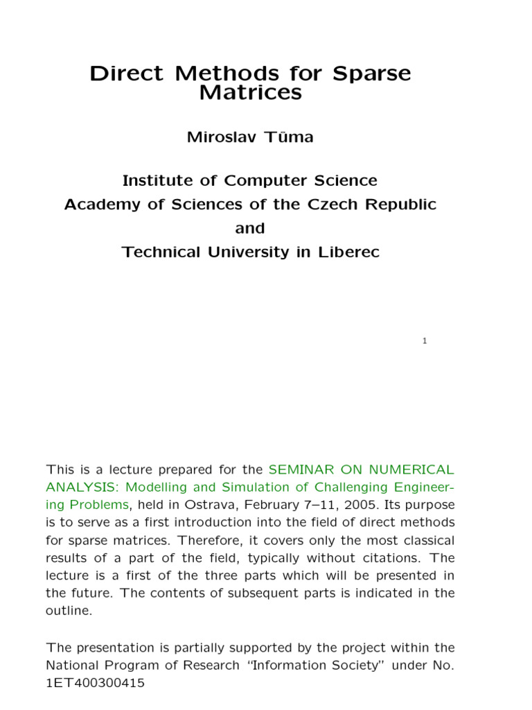 for sparse matrices. Therefore, it covers only the most classical
