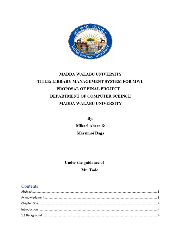TITLE: LIBRARY MANAGEMENT SYSTEM FOR MWU