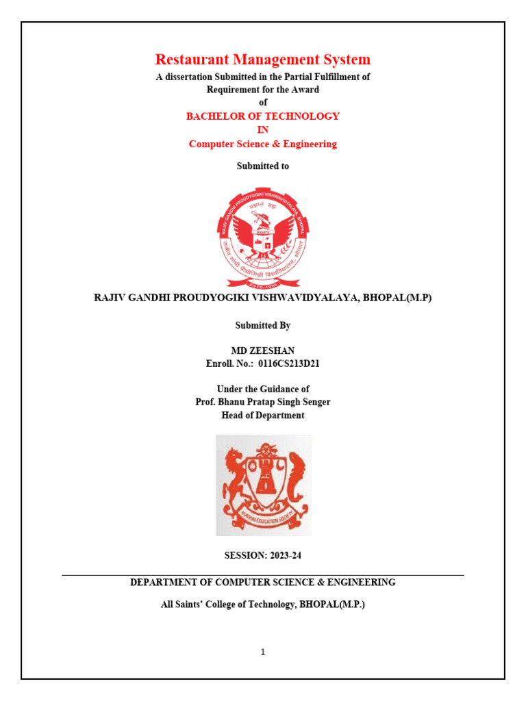 “Restaurant Management System” being submitted by MD ZEESHAN