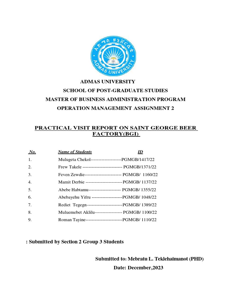 PRACTICAL VISIT REPORT ON SAINT GEORGE BEER