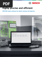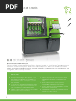 The document describes Bosch's new DCI 200 single common-rail injector test bench. The test bench allows workshops to quickly mount and test standard injectors within 15 minutes. It offers advantages like time savings, high quality testing, and always being up to date through regular online software updates. The test bench also has an ergonomic design and can test modern common-rail injectors with various technologies to meet emission standards.