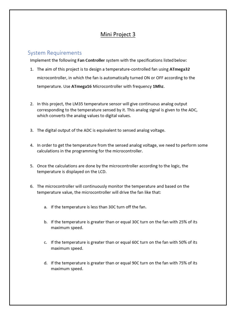 1. The aim of this project is to design a temperature-controlled fan using ATmega32