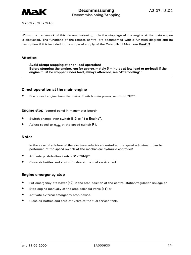 description if it is included in the scope of supply of the Caterpillar / MaK, see Book C.