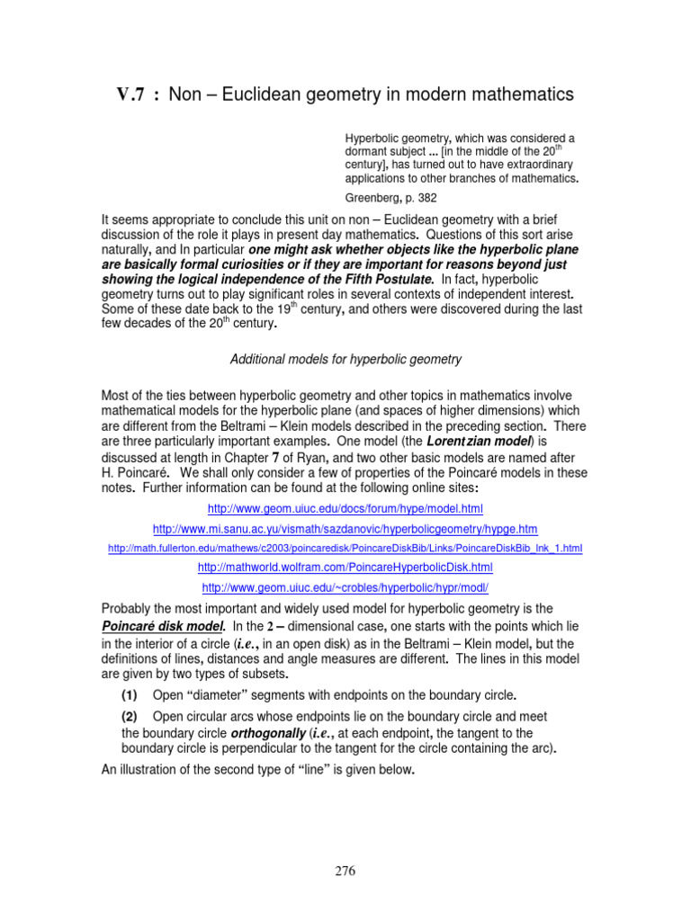 Euclidean models of the hyperbolic plane. In all the preceding models, it was