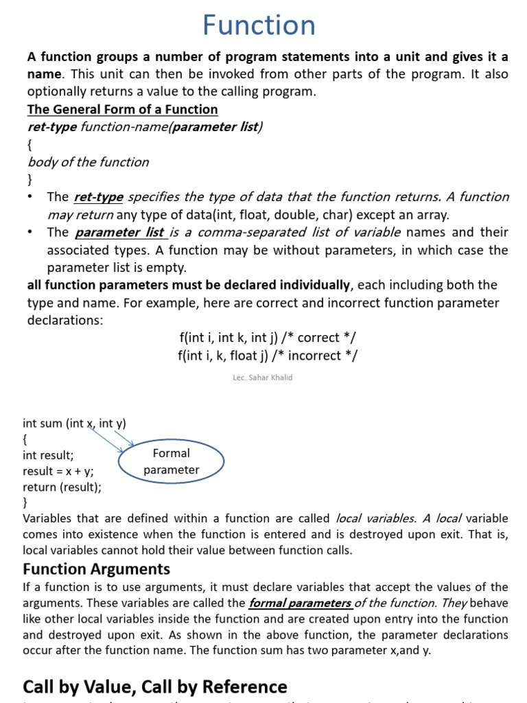 and destroyed upon exit. As shown in the above function, the parameter declarations