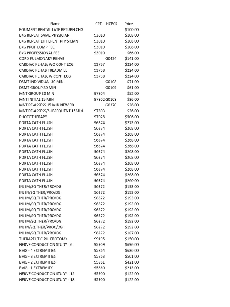 THERAPEUTIC PHLEBOTOMY 99195 $150.00