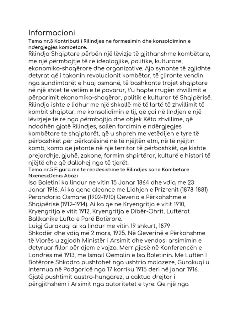Tema nr.3 Kontributi i Rilindjes ne formesimin dhe konsoldiminn e