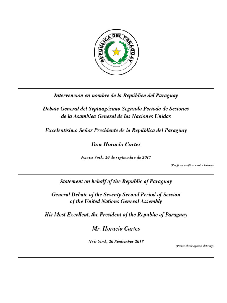 Statement on behalf of the Republic of Paraguay