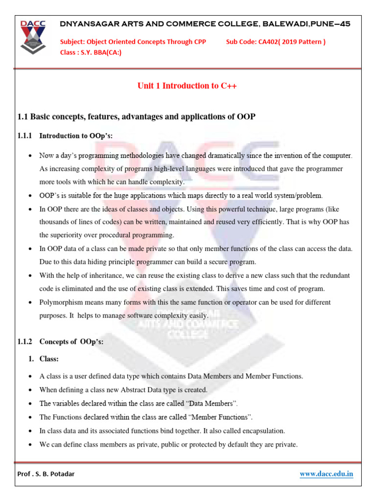 Notes CA403 Object Oriented Programming Using C Sybbaca