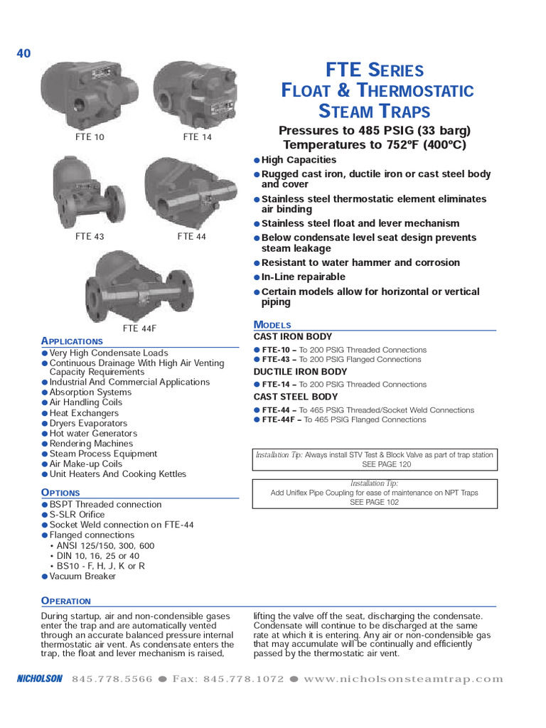 845.778.5566 ● Fax: 845.778.1072 ● www.nicholsonsteamtrap.com