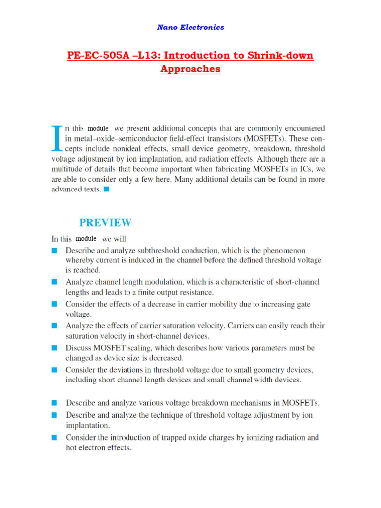 PE-EC-505A –L14: Non Ideal Effects in MOSFETs: Part-I