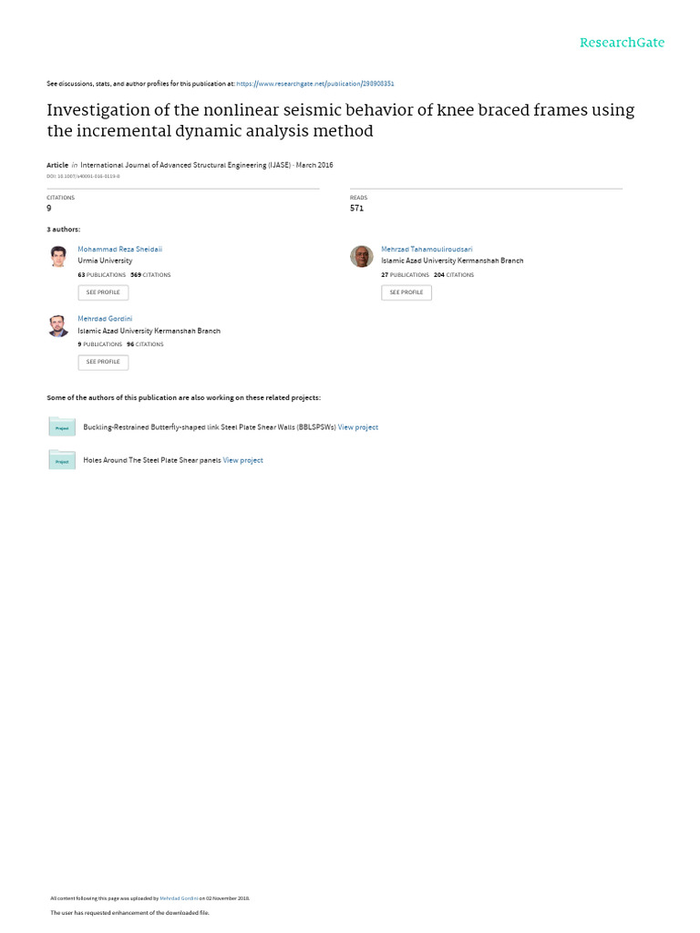 Abstract In knee braced frames, the braces are attached Keywords Knee brace Incremental dynamic analysis