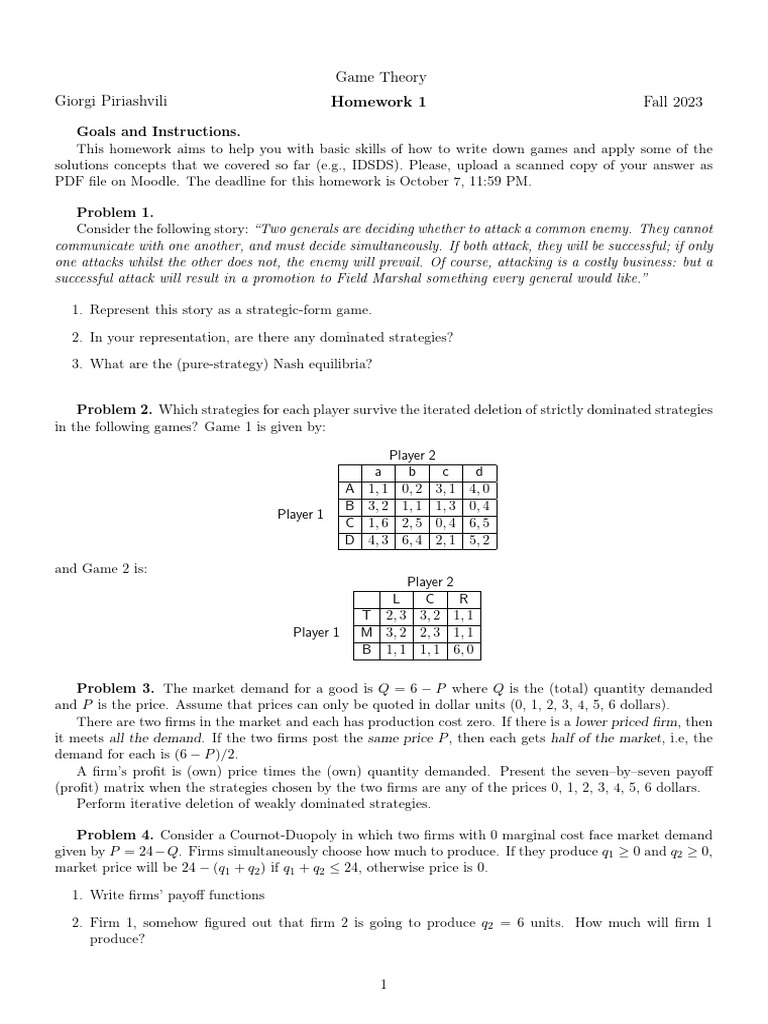 Problem 2. Which strategies for each player survive the iterated deletion of strictly dominated strategies