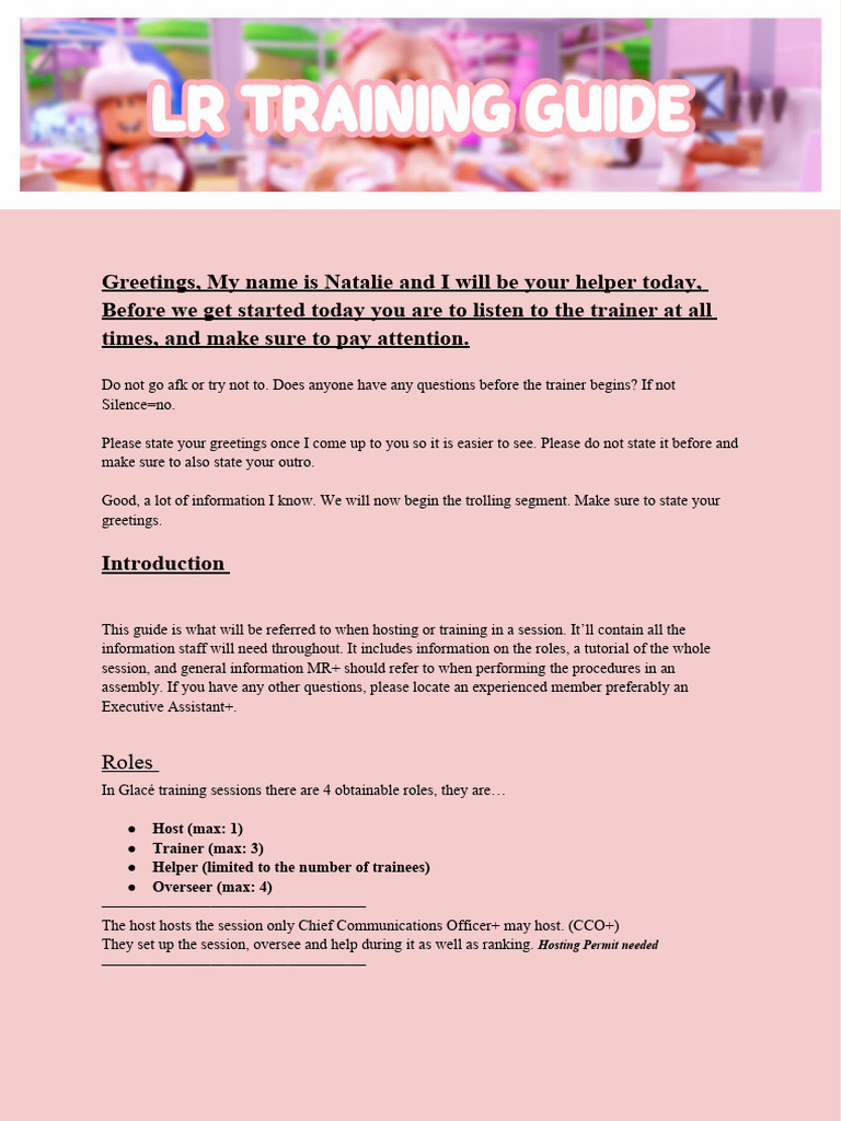 This guide is what will be referred to when hosting or training in a session. It’ll contain all the