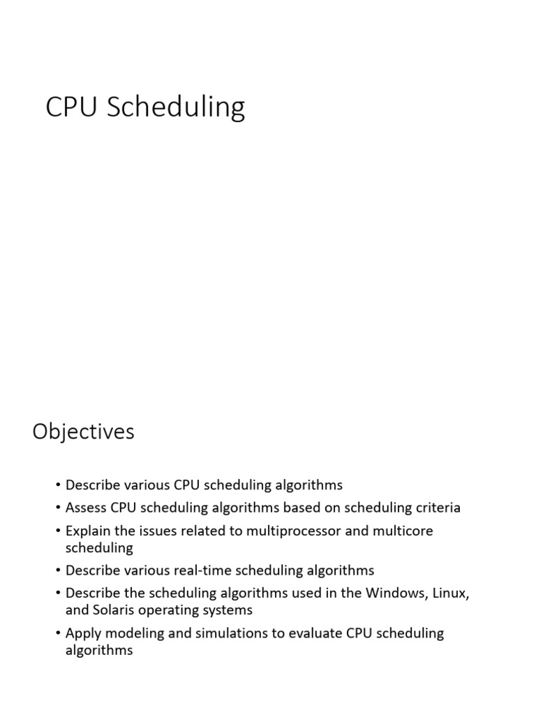 • Assess CPU scheduling algorithms based on scheduling criteria