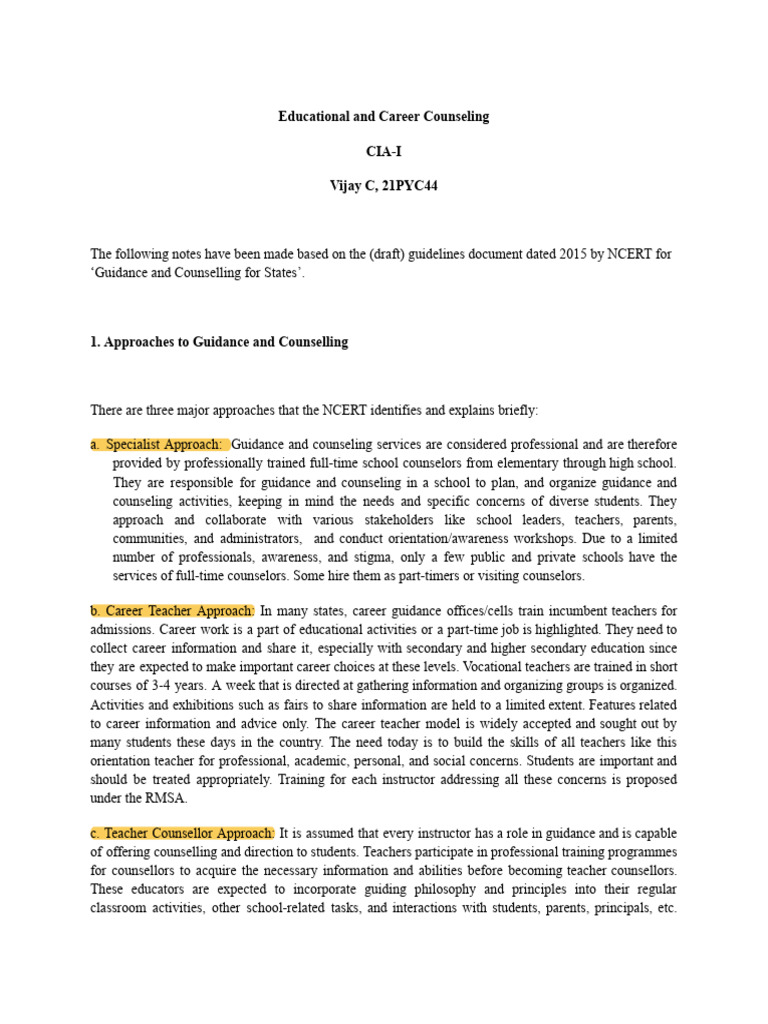 1. Approaches to Guidance and Counselling