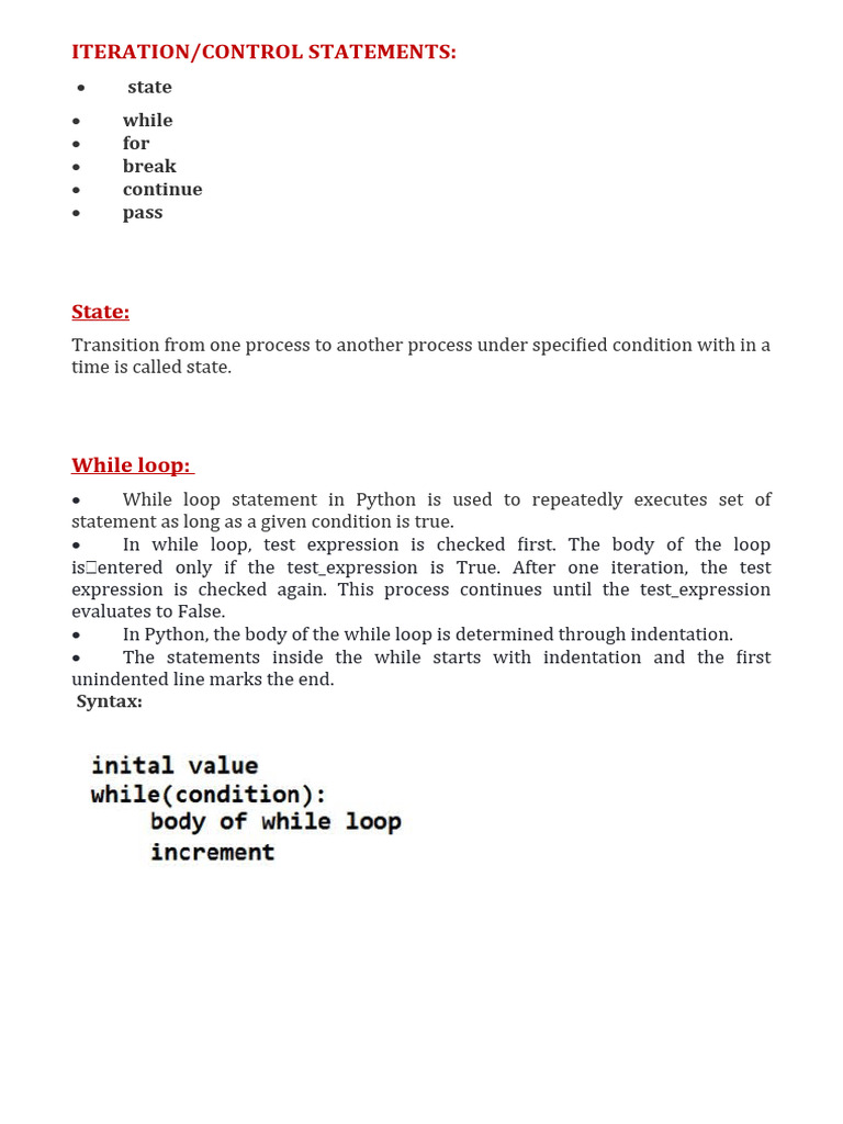 ITERATION/CONTROL STATEMENTS: