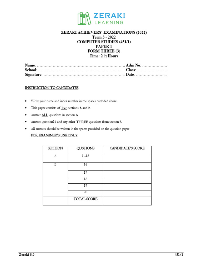 ZERAKI ACHIEVERS’ EXAMINATIONS (2022)