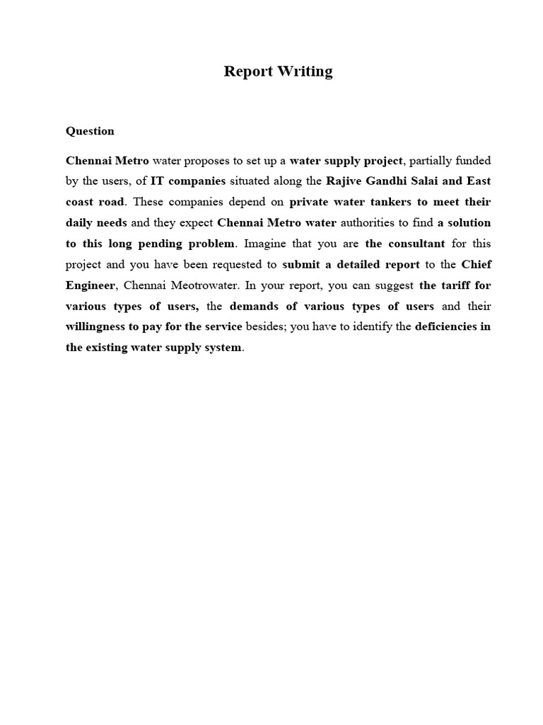 Engineer, Chennai Meotrowater. In your report, you can suggest the tariff for