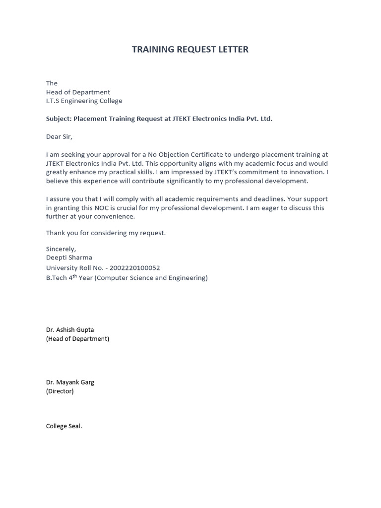 TRAINING REQUEST LETTER