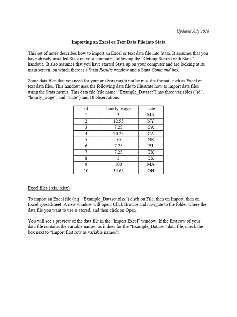 This set of notes describes how to import an Excel or text data file into Stata. It assumes that you