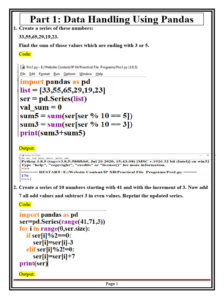 7 all odd values and subtract 3 in even values. Reprint the updated series.