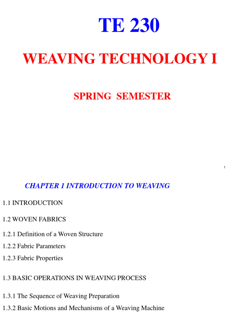 CHAPTER 1 INTRODUCTION TO WEAVING