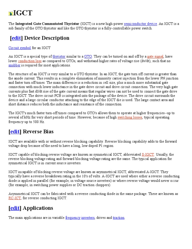 The Integrated Gate Commutated Thyristor (IGCT) is a new high-power semiconductor device. An IGCT is a