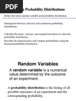 ❖ Discrete random variable A random variable (ii) P (0 to 2 breakdowns) = P (0 < x < 2)