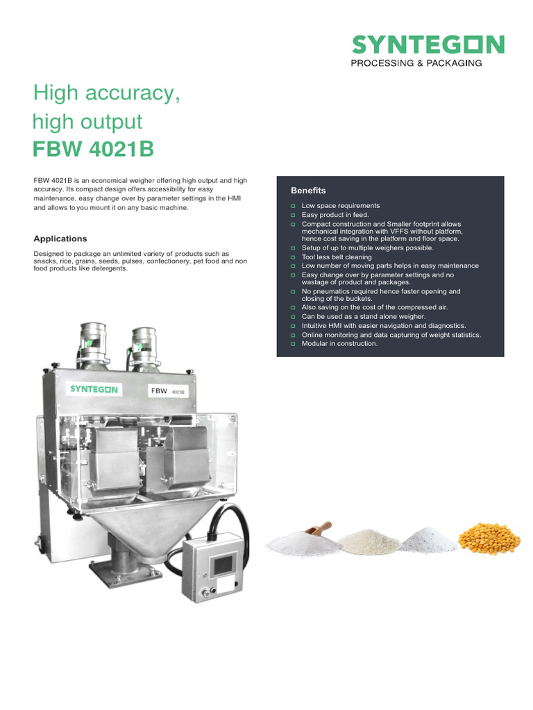 Weight range 200g up to 2000g (max. 3 ltrs per bucket)