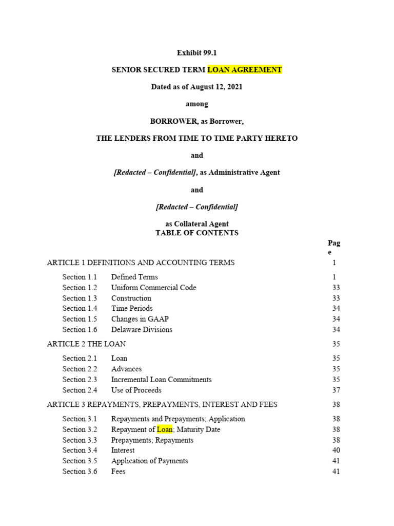 Reference is made to that certain Senior Secured Term Loan Agreement, dated as of August 12,