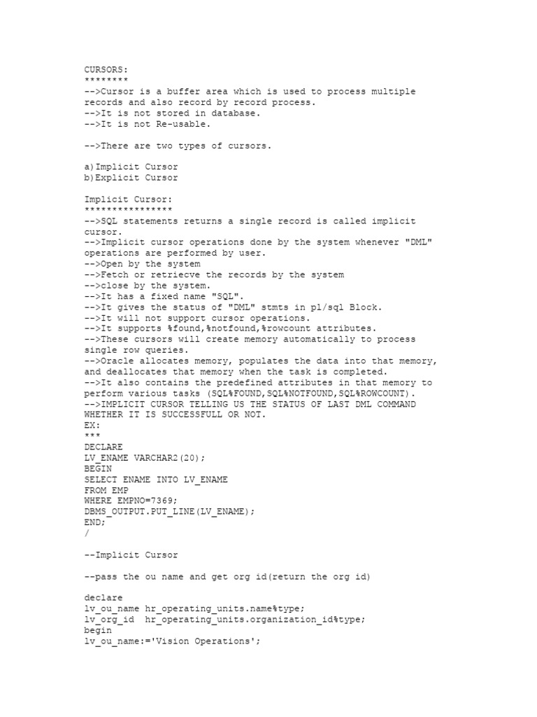 b)Explicit Cursor