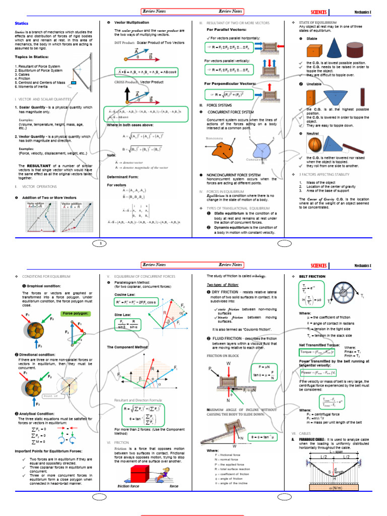 Review Notes Review Notes SCIENCES Mechanics I